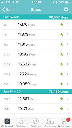 At first, a mere 6,000 steps a day was a grind, 8,000 steps a stretch and 10,000 a pipe dream. Now, I’m up to 15,000-plus on some days. I’ve met or exceeded my daily step goal every day since June 8, 2017 – some days even doubling it.